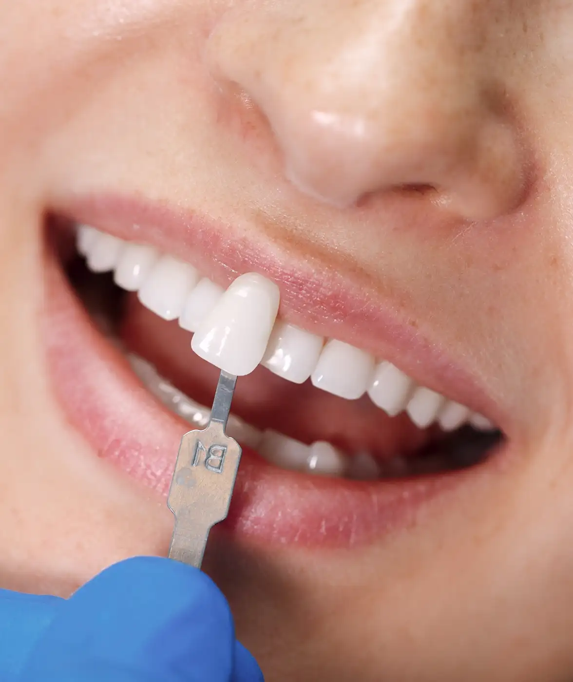 Each veneer is meticulously tailored to match your tooth’s shape, size, and colour for a harmonious and symmetrical result. Veneers are a permanent, highly effective option for addressing a range of cosmetic concerns, including discoloration, gaps, chips, cracks, and misalignment.